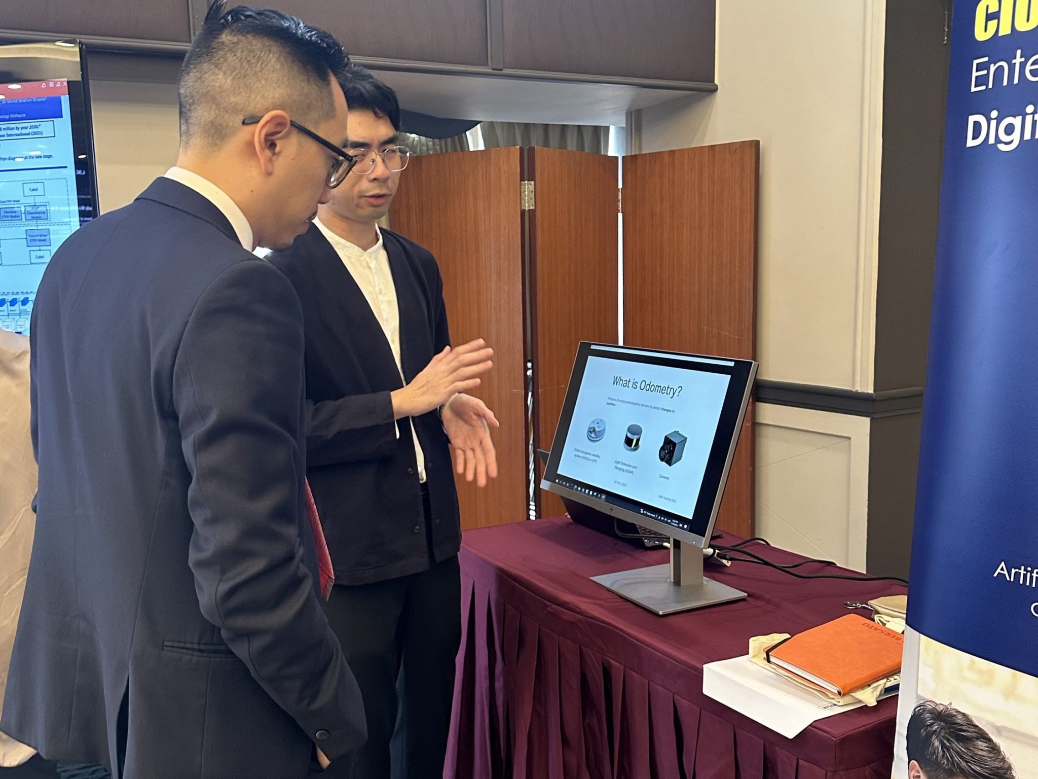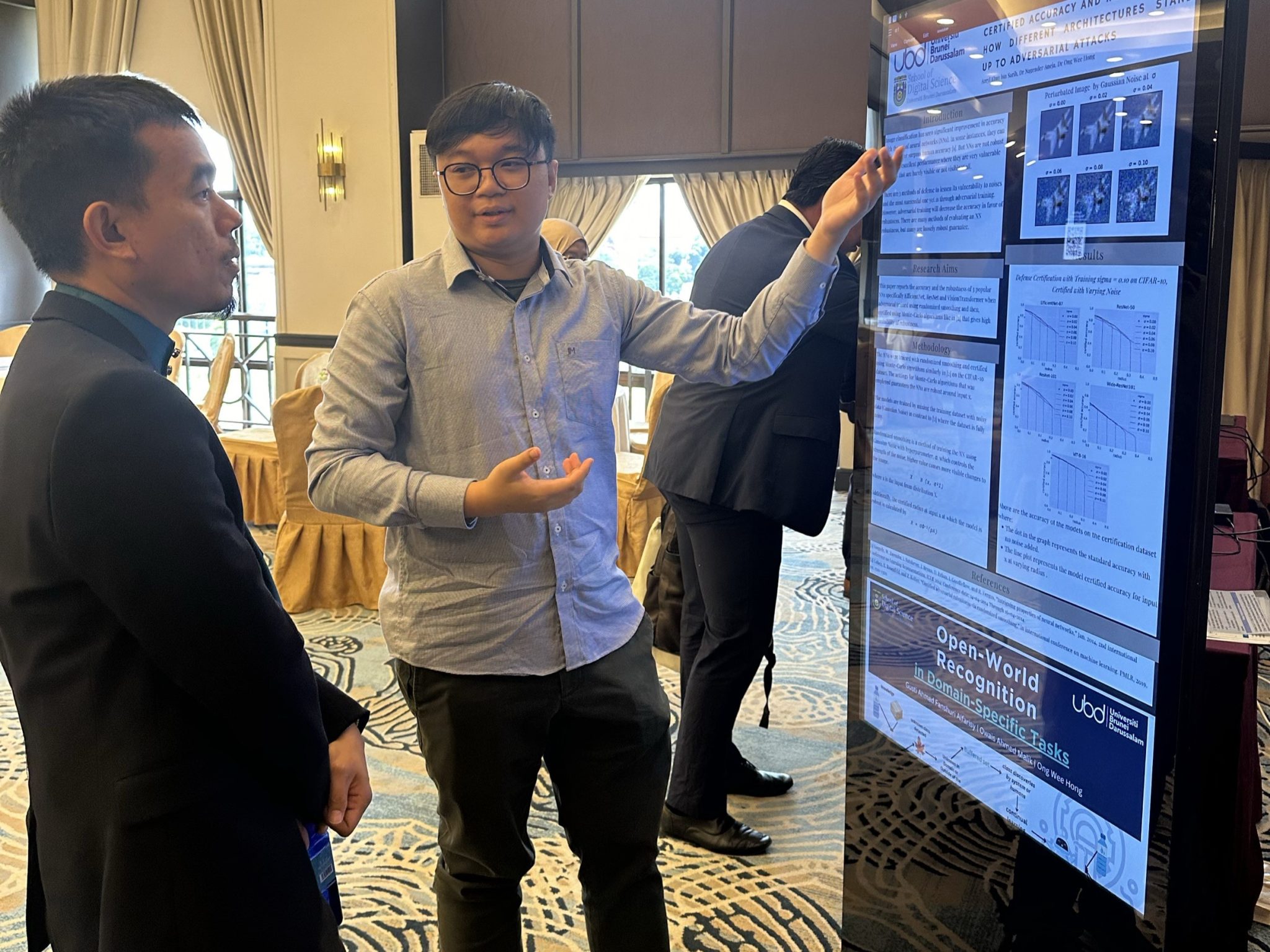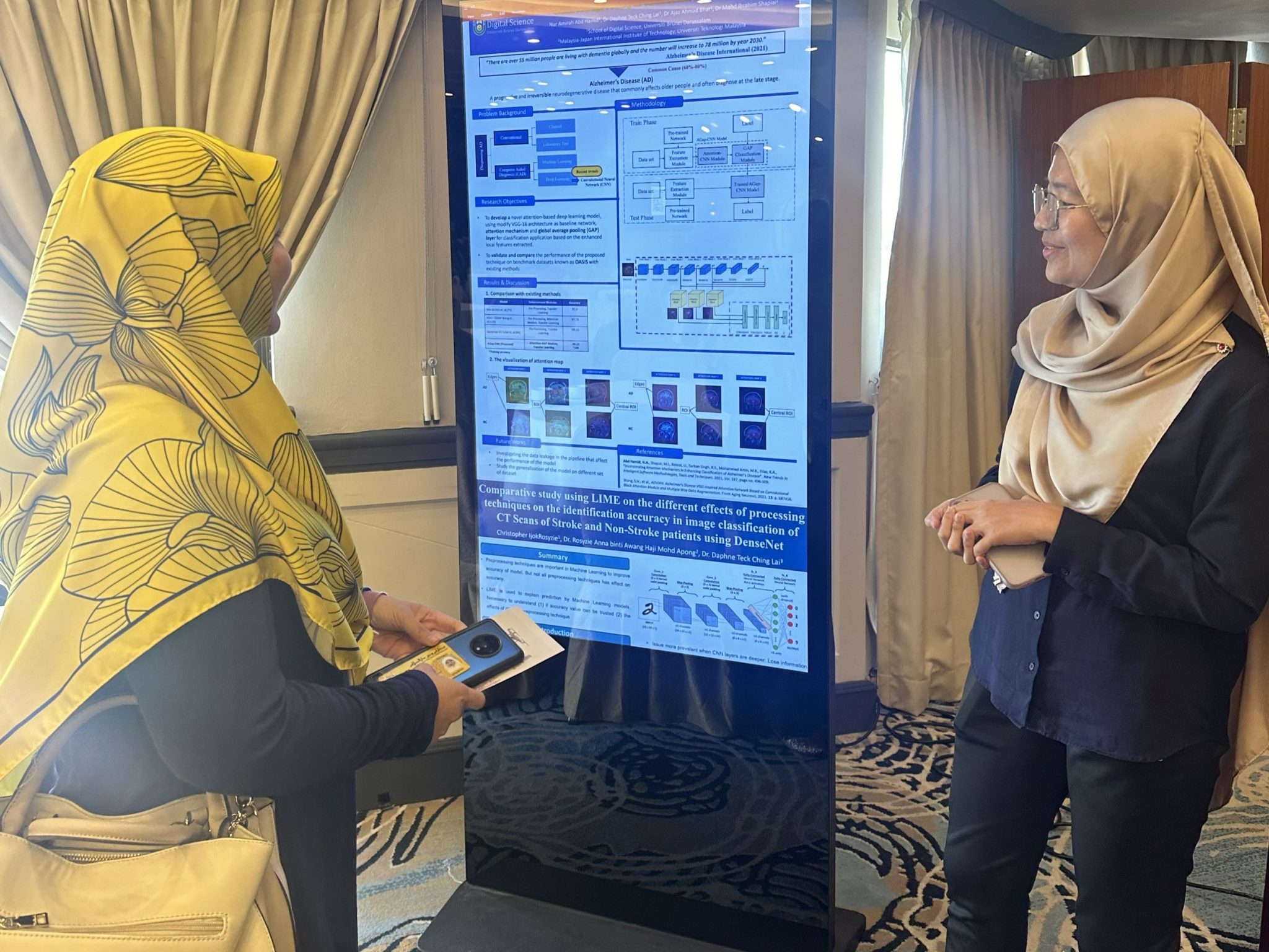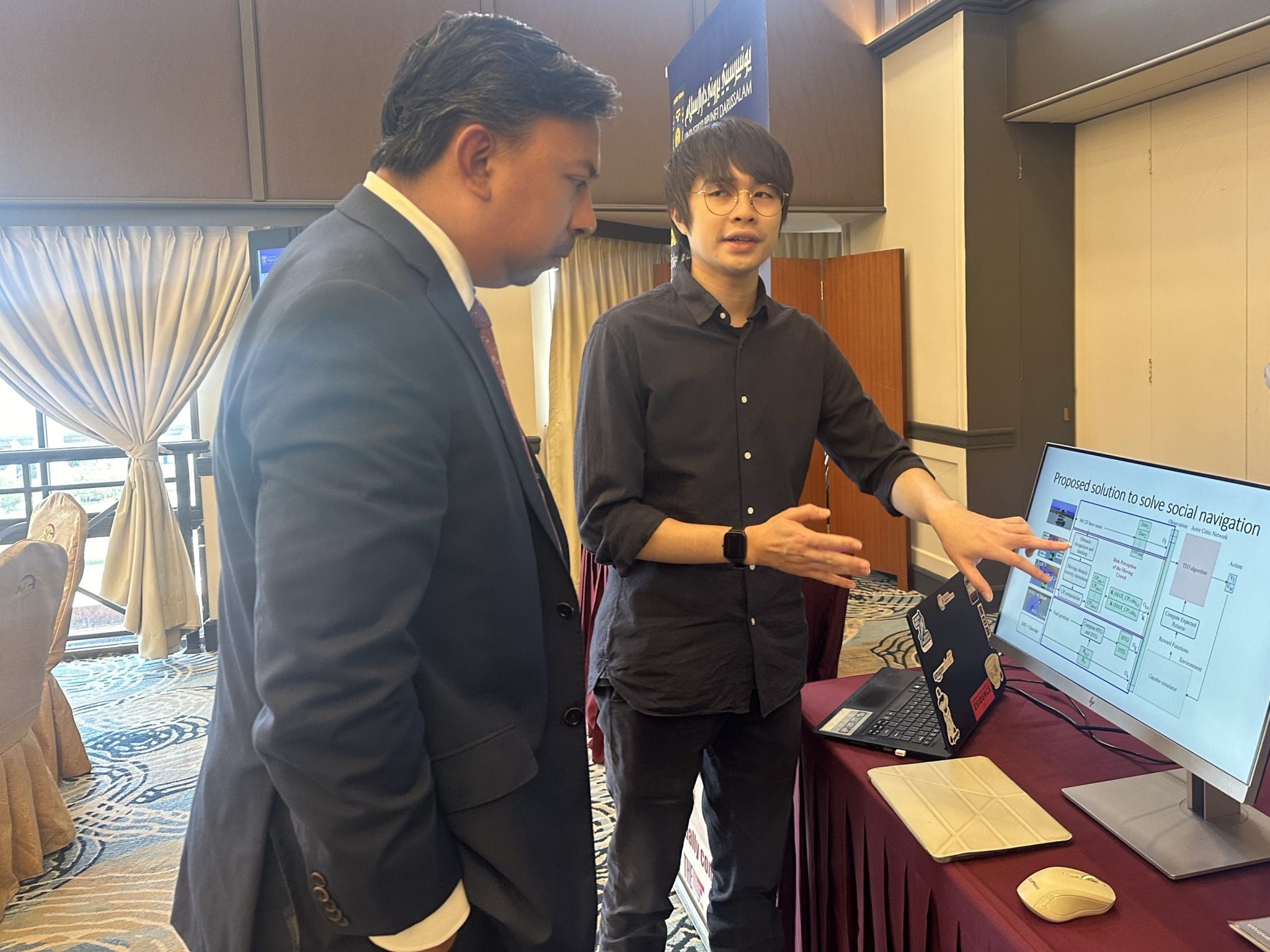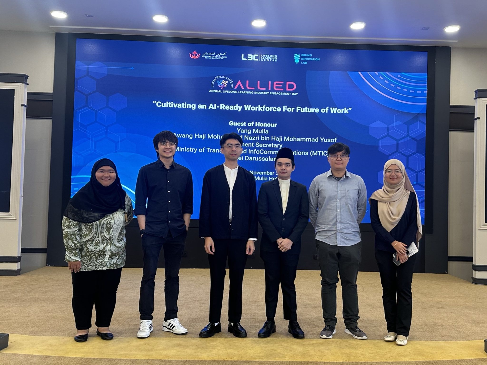 We were invited by the Lifelong Learning Centre (L3 Centre) of the Ministry of Education, Brunei to showcase AI projects at their event, Lifelong Learning Industry Engagement Day (ALLIED). The theme of the 3rd ALLIED is about creating AI-ready workforce through adoption of Artificial Intelligence technologies. Robolab and other postgraduate students from the School of Digital Science showcased their AI related projects. Hafiq, Nazrul, Syamimi, Raziq, Azryl and Amirah were at the event to showcase their projects. The event took place at Mulia Hotel on 16 Nov.